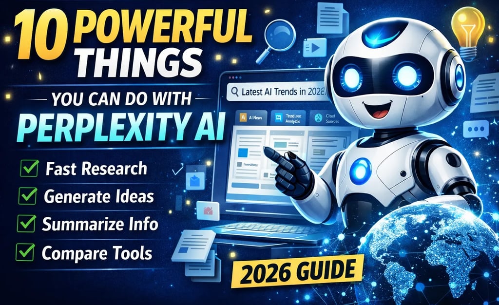 Discover 10 powerful things you can do with Perplexity AI to speed up research, generate ideas, summarize content, and improve productivity in this complete 2026 guide.