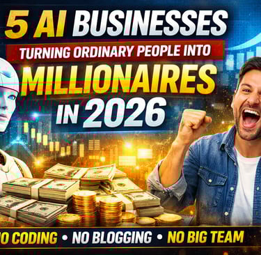 Discover 5 AI business models making ordinary people money in 2026 — no coding, no blogging, no big team. Learn automation, digital products, AI consulting & more.