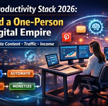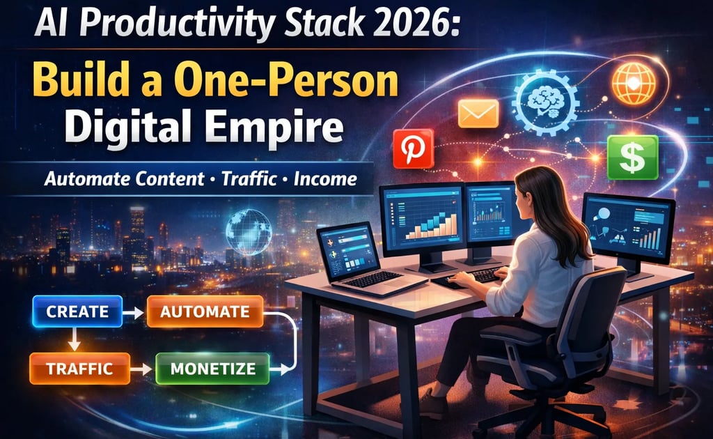 Build a powerful AI productivity stack in 2026 using automation, workflows, and smart tools. Scale content, traffic, and income as a solo creator.