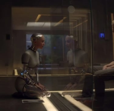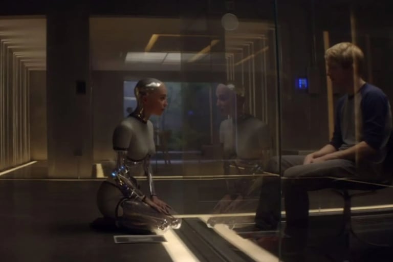 A realistic story of a man falling in love with an AI assistant—very close to today’s AI interactions.Ex Machina