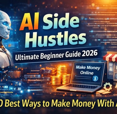 Discover the best AI side hustles for beginners in 2026. Learn how to make money using AI tools, freelancing, automation, blogging, and digital products