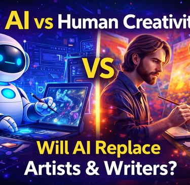 Explore the debate between AI and human creativity. Can AI replace writers, designers, and artists? Discover the future of creativity in the AI era.