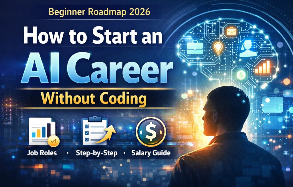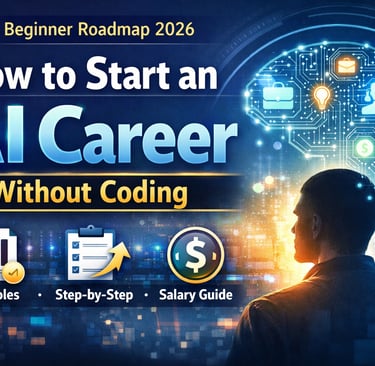 Want to start an AI career without coding? Discover beginner-friendly AI jobs, essential skills, tools, and a step-by-step roadmap to enter the AI industry in 2026.