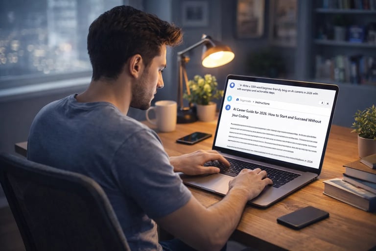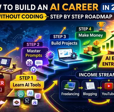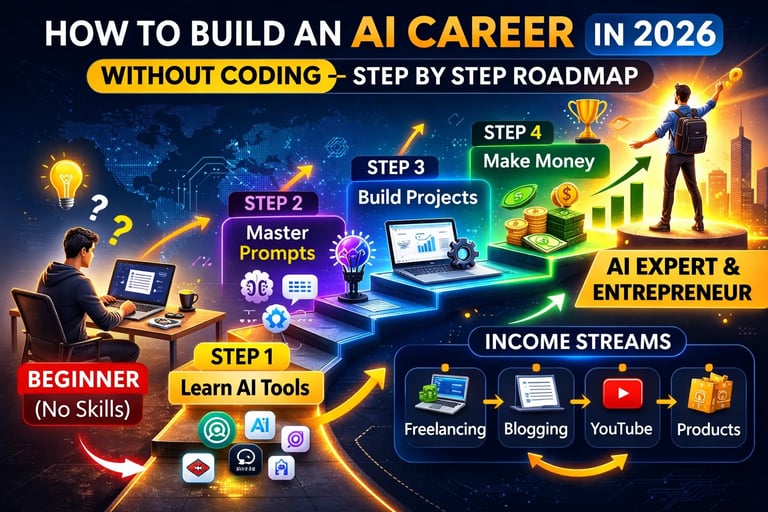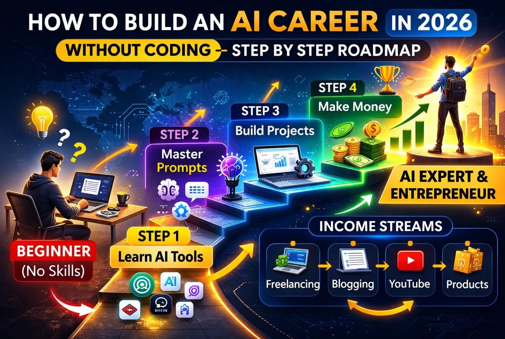 Start an AI career without coding in 2026. Learn prompt engineering, AI tools, and real ways to make money step-by-step — beginner-friendly guide.