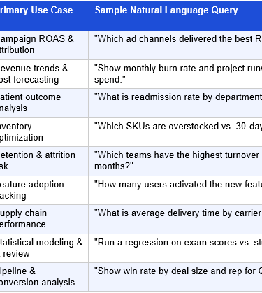 From direct testing experience: a non-technical user with a sales CSV file and a clear business question can get meaningful, statistically valid analysis in under five minutes on their first session. This is not an exaggeration — it reflects what the platform actually delivers in practice.