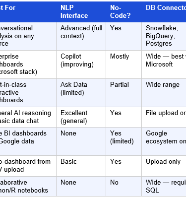 Julius AI also offers iOS and Android mobile apps — the full analytical capability in a mobile interface, which is genuinely useful for reviewing scheduled reports on the go.