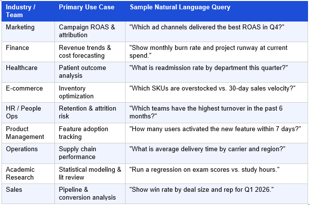 Table 3: Julius AI Industry Use Cases — 2026