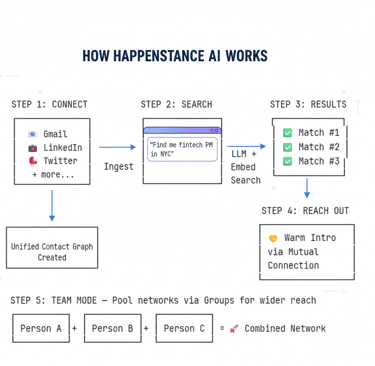 Understanding what is Happenstance AI and how does it work starts with one simple concept: your network is a goldmine, but most people can only access a fraction of it at any given time. Happenstance AI fixes that.