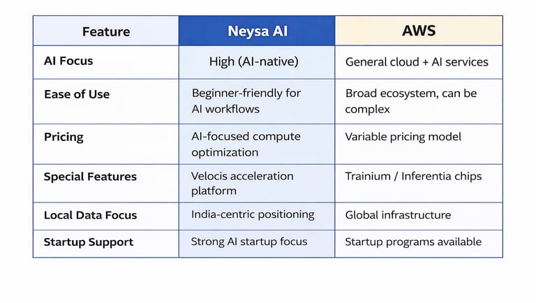 Neysa AI stands out because it is built specifically for AI workloads rather than general cloud usage.